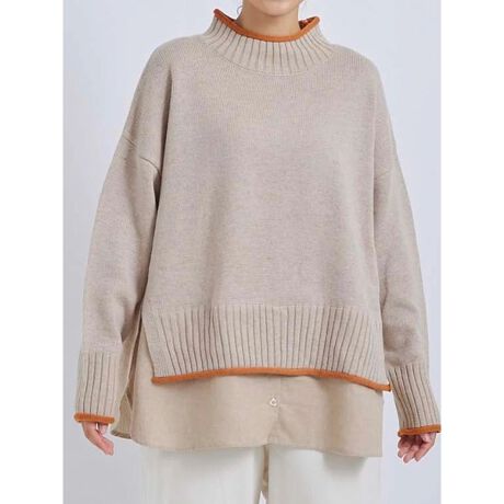 裾の異素材切り替えでレイヤード風の着こなしを楽しめるプルオーバー。