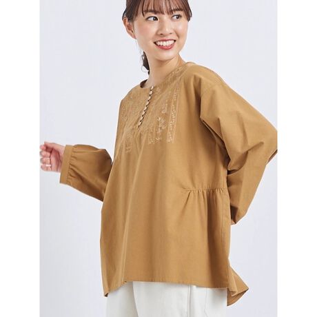 フランネル素材のあたたかみのある生地です。ゆったりとしているので、重ね着も出来そうです。胸元のお花の刺繍やサイドのギャザーが可愛いです。秋になったら着用するのが楽しみです。他の色も欲しかったです。
