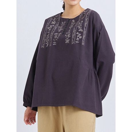 フランネル花柄刺繍ブラウス