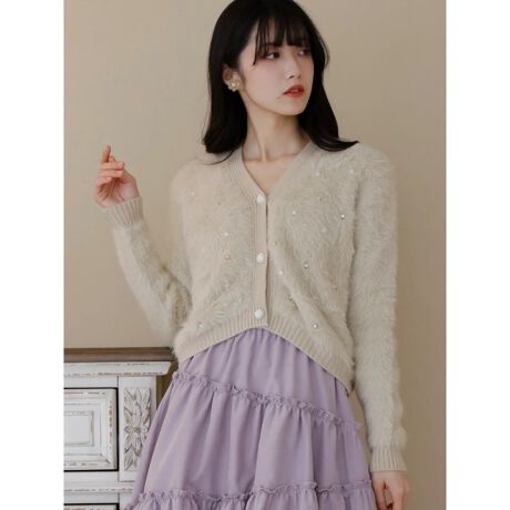 ビジュー付きシャギーカーディガン