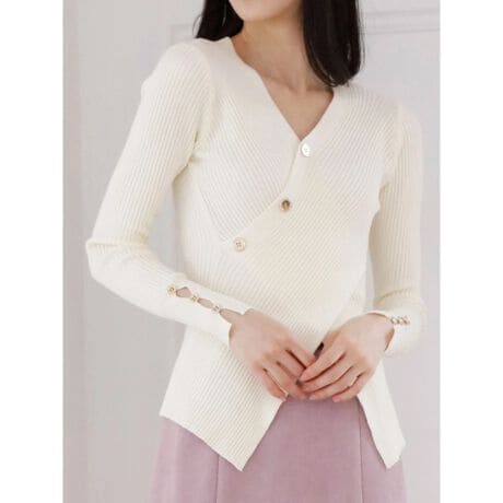 カシュクールボタンニットプルオーバー
