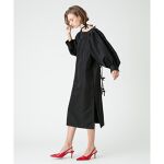 マットタフタの生地のワンピース。袖のボリュームが印象的なデザインです。ベルトに複数のリボンを施していて、LOULOU WILLOUGHBYらしいオリジナル感満載のデザインです。リボンベルトは、ウエストを絞るのはもちろん、垂らしたままでも、ベルトを外してシンプルにも。また、首に巻いてチョーカーのようにも合わせられ、いくつものデザインを楽しめます。オールシーズン着用可能な一着になります。フィッティングモデル(詳細画像)172cm B82 W66 H92 着用サイズ:02(M)