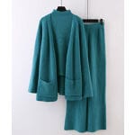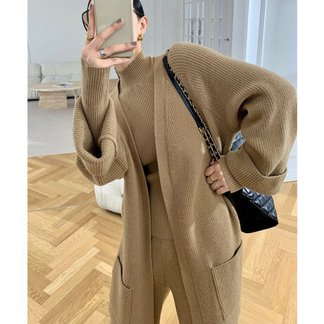 カーディガンは厚手の素材で、暖かさをキープしながらも軽やかな着心地を実現