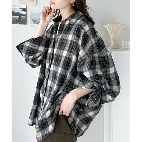 抜け感のあるカジュアルコーデに。ワイドスリーブ オンブレチェックオーバーシャツ