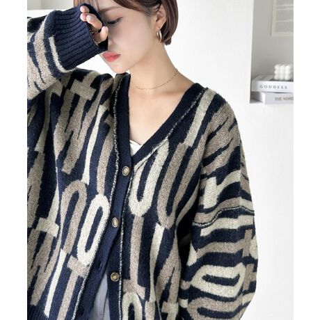 目を引くロゴ総柄ジャガードが特徴のダブルジャガードニット。
