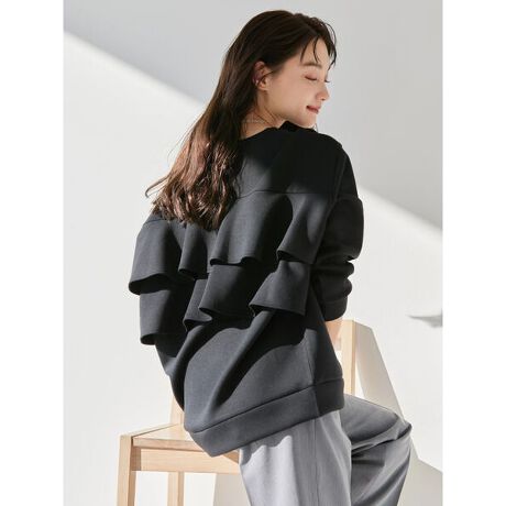 バックフリルのデザインが後ろ姿のアクセントになるプルオーバー。