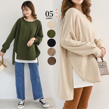 ゆるシルエットとヒップが隠れる長め丈だから、スキニーやレギンス合わせでメリハリコーデ