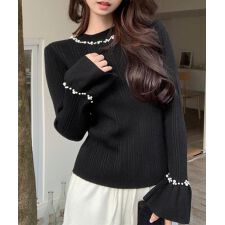 伸縮性のあるリブニットがボディラインに優しくフィット、立体感のある縦ラインの編地がすっきり細見えをアシストします。