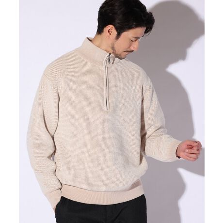柔らかな肌触りと優れたストレッチ性のあるワッフル編みのハーフジップニット