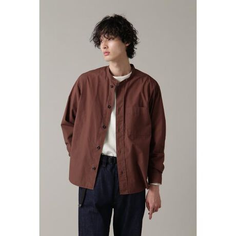 反発性のあるテクスチャーと洗いざらしの風合いが心地よいコットン素材のカラーレスシャツ。太い前立てや、スクエア形状の剣ボロがデザインのポイント。リラックスしたフィットが特徴のアイテム。