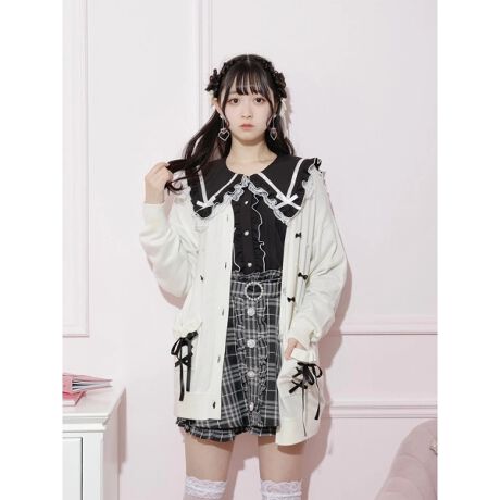 フロントに施された装飾がガーリーなムードを演出するカーディガン。