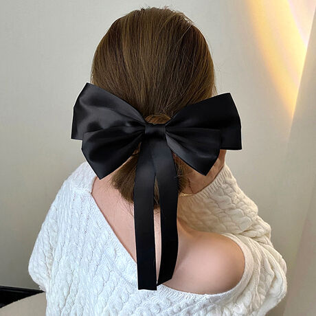 サテンビッグリボンバレッタ韓国ヘアアクセ