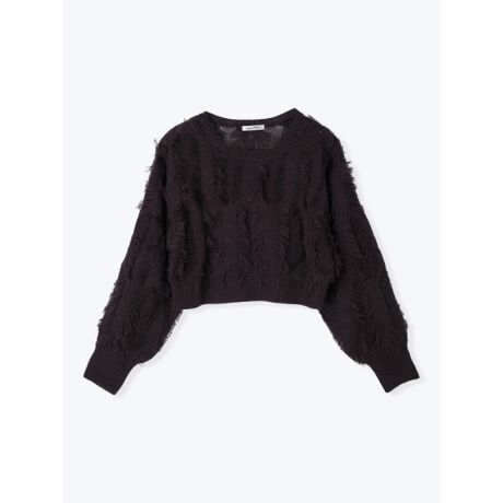 ふんわりとしたロングフリンジが装いを華やかに演出するニットプルオーバー。