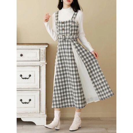ツイード切替ジャンパースカート