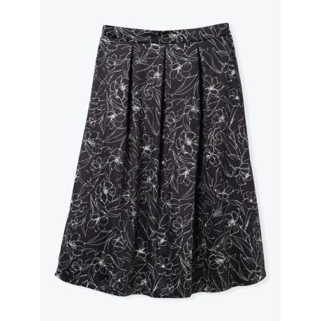 線画タッチの花柄がエレガントな雰囲気を漂わせるミディスカート。