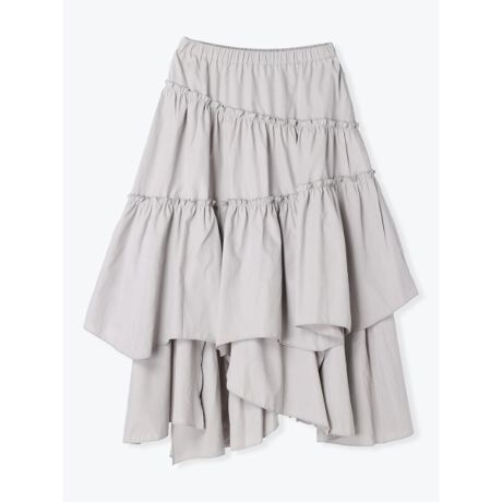 アシンメトリーなティアードデザインで、華やかな印象に仕上げたスカート。