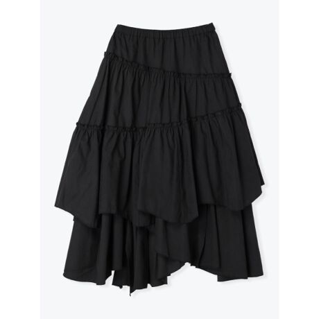 アシンメトリーなティアードデザインで、華やかな印象に仕上げたスカート。