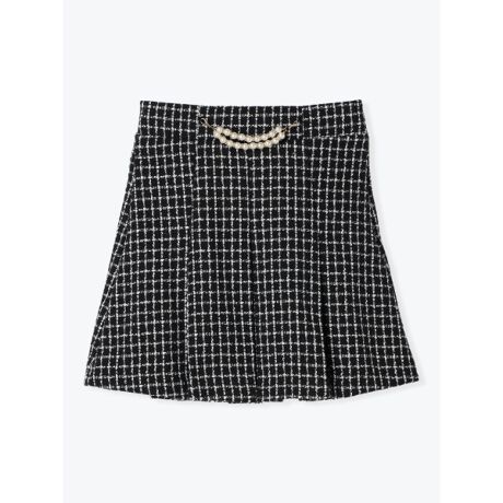 ボックスプリーツで大人可愛いデザインに仕上げたツイードスカパン。
