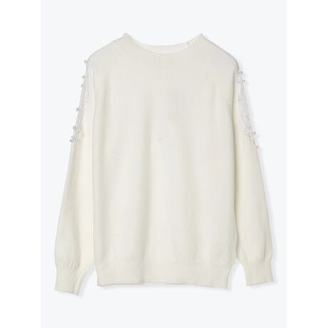 スリーブに施されたパール調がフェミニンなアクセントになるプルオーバー。