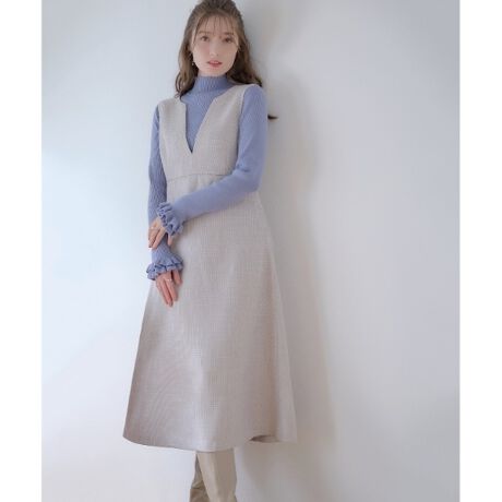 襟ぐりのすっきりとしたカットがインナーとの相性も良いデザインジャンスカ