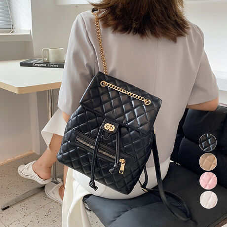 エレガントで女性らしいフェミニンな印象のキルティング仕様、チェーンショルダーを加えてカジュアルおしゃれなオトナ女子リュック