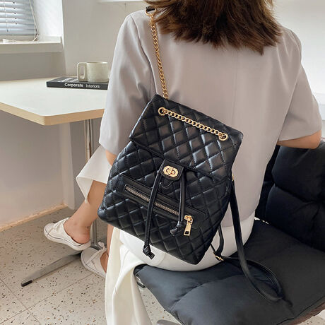 エレガントで女性らしいフェミニンな印象のキルティング仕様、チェーンショルダーを加えてカジュアルおしゃれなオトナ女子リュック