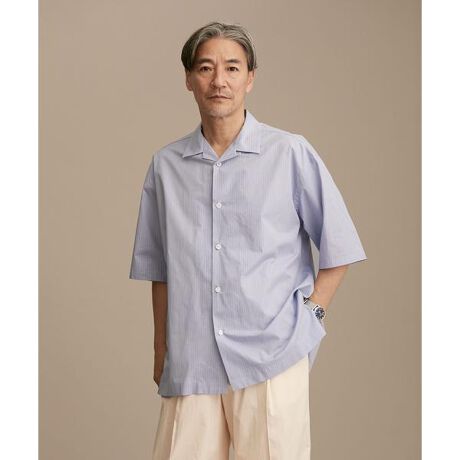 LB.01/ストライプ オープンカラーハーフスリーブシャツ
