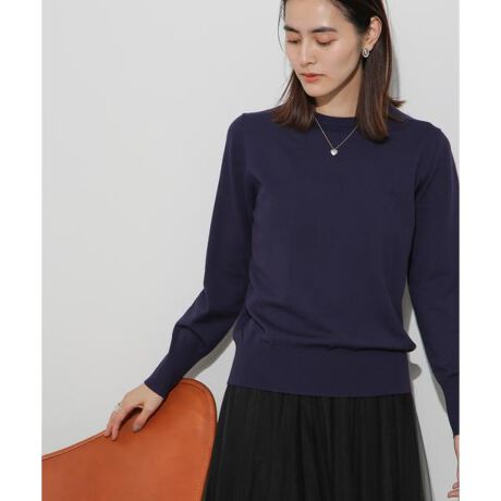 ややツヤのあるきれいめな素材感が通勤にも様になるニットプルオーバー。ストレッチ性が高くもちもち感のある素材に、程よくゆとりのあるサイズ感が快適な着心地を実現。トレンドに左右されず長く愛用できるデザインなので、ワードローブに追加しておくと重宝しそう。