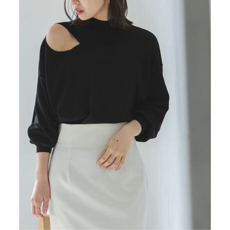 ショルダー部分以外の露出は抑えることで全体をバランス良く纏めており、適度な抜けのある女性らしいニットに仕上がりました。