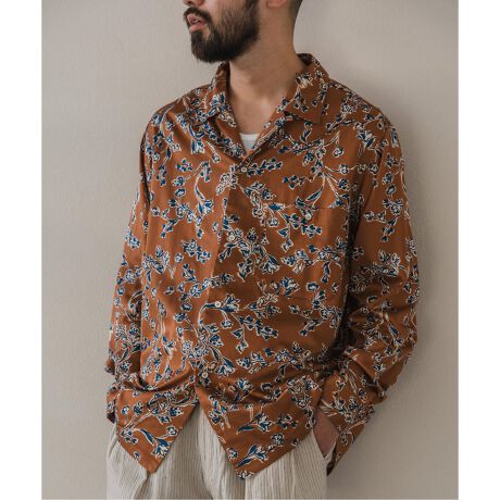 フラワーパターン オープンカラーシャツ