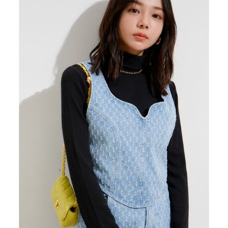 体のラインに沿った切替が細見え効果◎なデニムビスチェです。