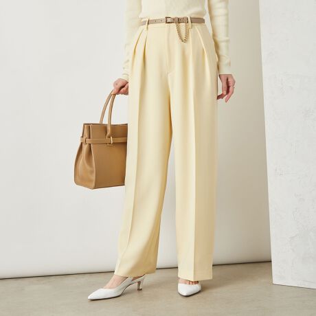 ・ワイドシルエットにタックを施し、ボリューム感を出しつつ、ウエスト周りはすっきり見え