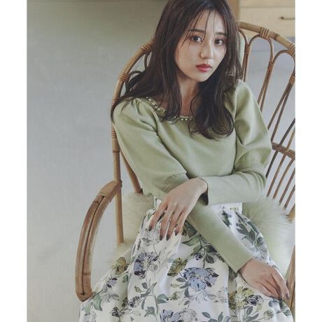 【商品特徴】フロントネックに小粒のパール調パーツをあしらった華やかなニット。女性らしく柔らかいラインで仕上げたスクエアネックが、デコルテをキレイに見せてくれます。パフッとしたスリーブデザインは、途中から細くなってフェミニンさをプラス。落ち着いたカラーリングに襟ぐりのパール調が映えて、大人っぽく着用いただけます。【スタイリング】ティアードスカートを合わせれば、大人フェミニンな着こなしが完成します。