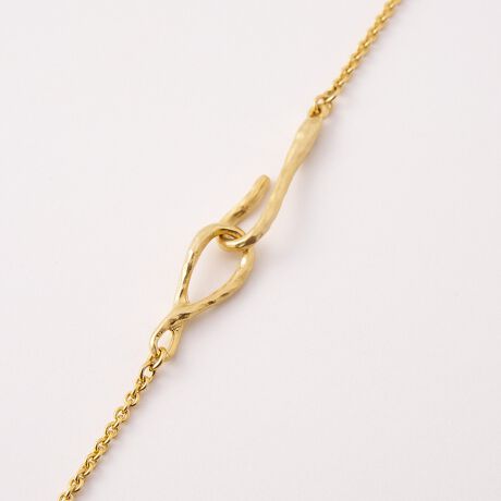 ツイストリングとフックに合わせたやや太めのチェーンが、スタイリッシュな印象的を与えるネックレス。
