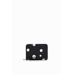テクスチャーのあるレザー調素材のミニ財布。ペイント柄プリント、多様なコンパートメントとポケットをあしらいました。
