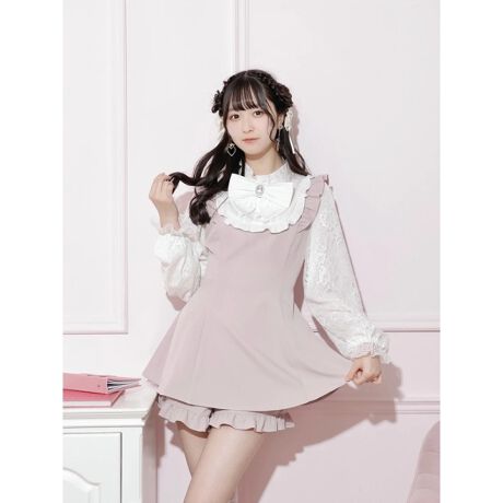 スリーブはレースで切り替えられ、フェミニンなムードを演出します。