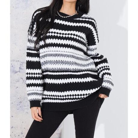 マルイウェブチャネル   /   トップス   /   ニット・セーター   /   立体 ボーダー オーバーサイズ ニット セーター Uネック トップス 長袖