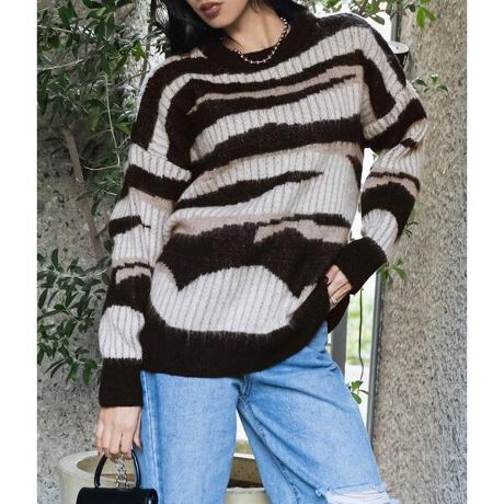 ゼブラ シャギー ニット セーター トップス 長袖