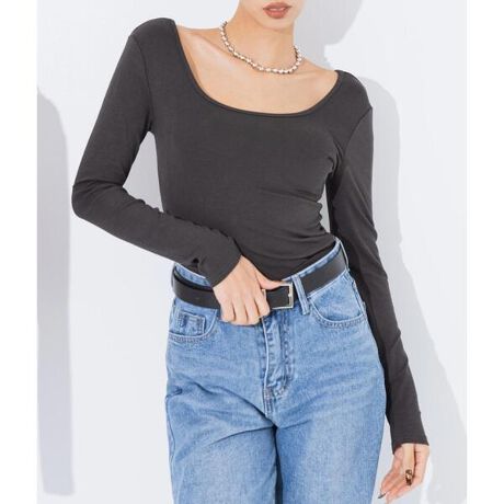 Tシャツ 前後2way Vネック Uネック トップス 長袖