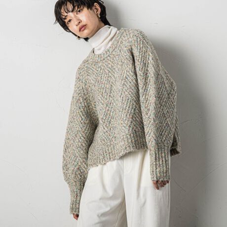 存在感あるカラーループが魅力的な大人のカラーネップニットプルオーバー。