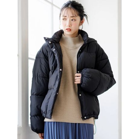 ふっくらとした中綿入りであたたかく着用出来るフード付きジャケット。