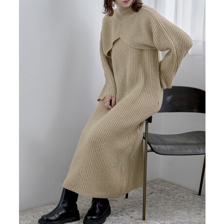 etoll. エトル モヘアライクの柔らかなニット素材。ボレロニットプルオーバーとワンピースがセットになった大人顔な一着。