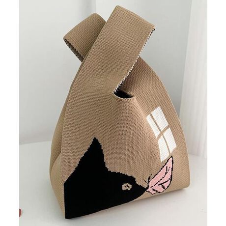 グリーンレオパード購入。コンパクトなニットバッグで柔らかい手触り、裏地はなし。カッコかわいいデザインなのでシンプルコーデのアクセントになって遊べそう。