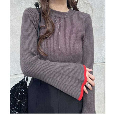 もっちり感が気持ちいいベーシックニット。袖先のバイカラーデザインが表情のある手元を演出します。メイントップスとしてもキャミワンピなどのインナーとしても活躍し、こなれ感のあるスタイルに。長めの袖丈がうれしい2サイズ展開です◎