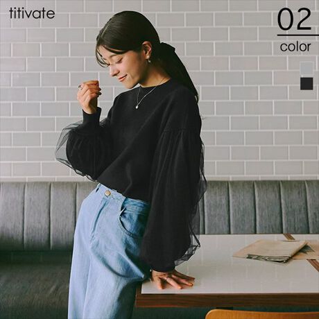 ・チュール素材が大人可愛いスタイリングを叶えるニットプルオーバー。
