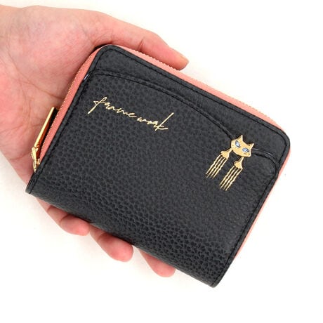 [型番:45001]ブルーの目をしたいたずらっ子な子猫をモチーフにした愛らしいキトンシリーズ。ひっかき傷や足跡を表現した箔押しや内装の花柄生地など見つけると楽しいポイントが随所にちりばめられたお財布です。