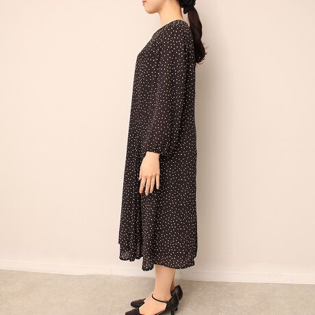 程よい透け感の生地に無地と変形ドットのプリントをした2色展開。