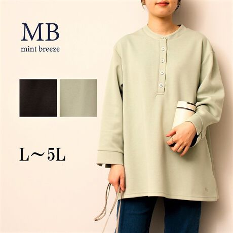 【大きいサイズ】バンドカラー スムース タッチ チュニック