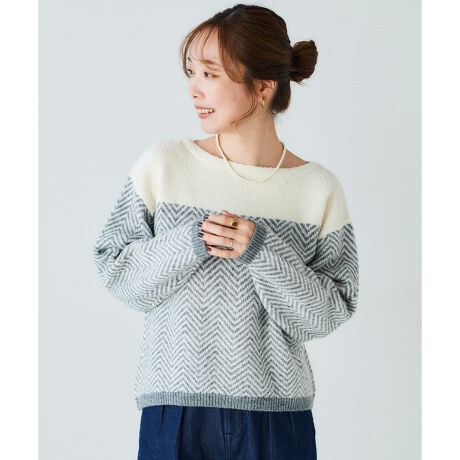 昨年大人気だったバイカラーのヘリンボーン柄ニットがデザインが新しくなって登場。
