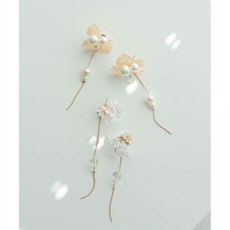 ・ピンクにはパールを、クリアには同素材のパーツを施しフェミニンな印象に